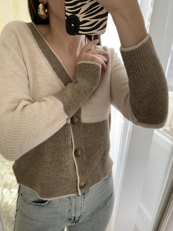Невероятный кардиган💔 Базовая вещь Очень красивые пуговицы под дерево Размер указан как S, можно и на М Тканина: 55% акрил, 25% нейлон Длина 50 см Рукав 45 см Полуобхват груди 51 см Стан нового