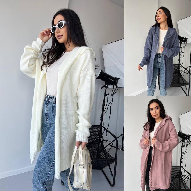 New collection! Кардиган Модель 5029 Размер универсальный 44-54 Состав полушерсть Цвета: джинс, молоко, светлая пудра, темная пудра, серый Замеры: - длина 85 см; - длина рукава от горловины 80 см; - ширина по спинке 70-78 см;