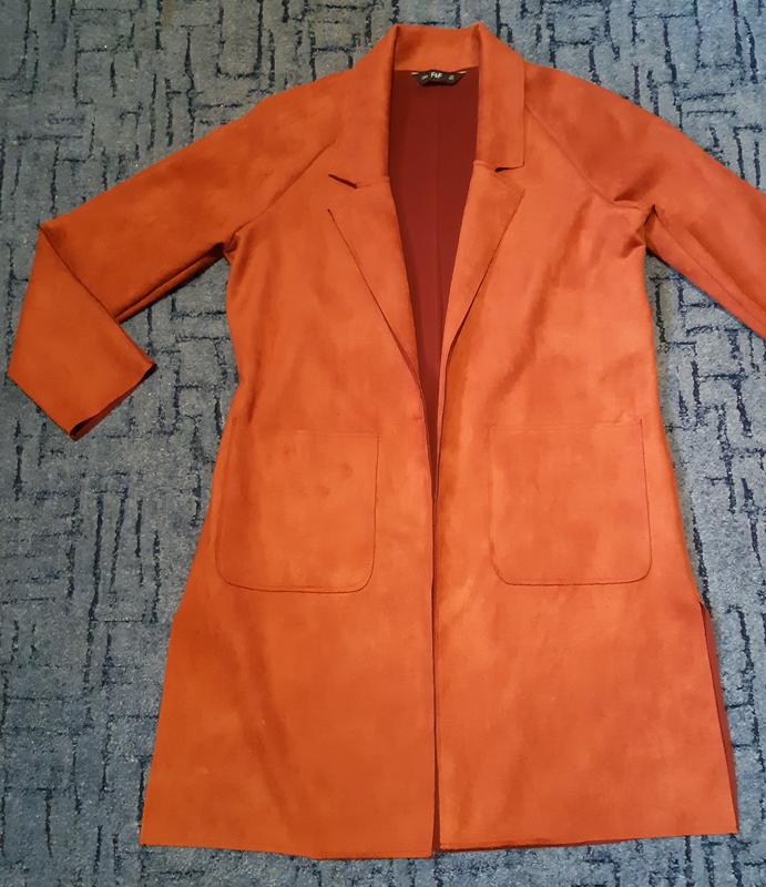 Кардиган хорошего качества, фирма F&F, ткань напоминает велюр. Размер S. Сзади поясок пришит. Очень красиво смотрится. Цвет бронзы. В идеальном состоянии.