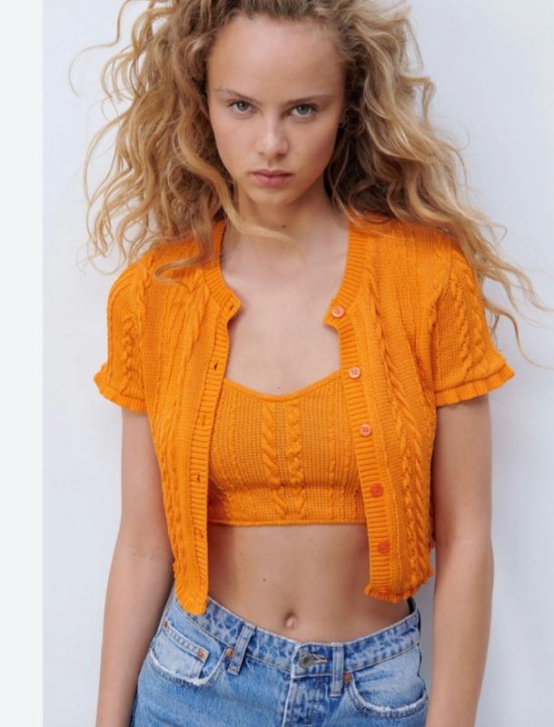 🌿яркий оранжевый топ от Zara с пуговицами, красиво тянется, садится по фигуре Размер:M Замеры:ПО груди 40 см, длина 40 см