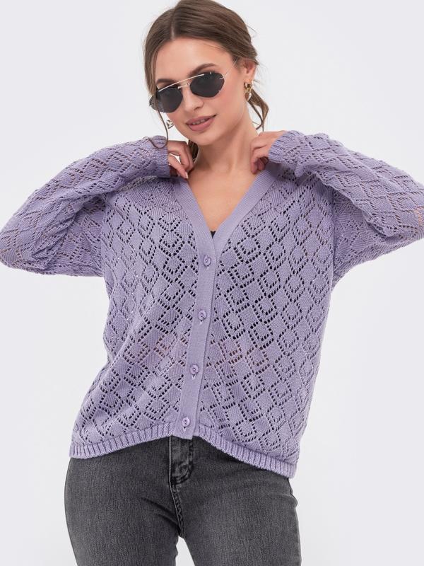 💕Укороченный кардиган ажурной вязки. Модель с вязкой резинка на манжетах и по низу изделия. Застегивается на пуговицы по планке. ✔Размер:44,46,48 🪡длина изделия -58см 🪡длина рукава -55см 🧵Состав: 80% хлопок, 20% полиэстер 🎨Цвет: сиреневый,фуксия 🧵Материал: Бавовна 💳Цена 1290грн Арт24280 ❗Для заказа и детальной информации ndем в дырэкт💌, или комментарии ⤵️