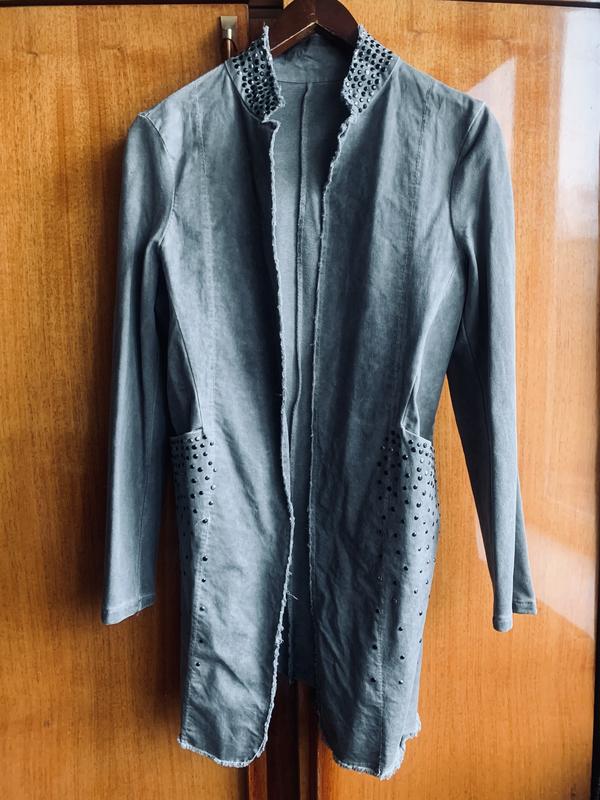 Джинсовый кардиган,серого цвета,в очень красивом состоянии, с камнями на вороте и карманах