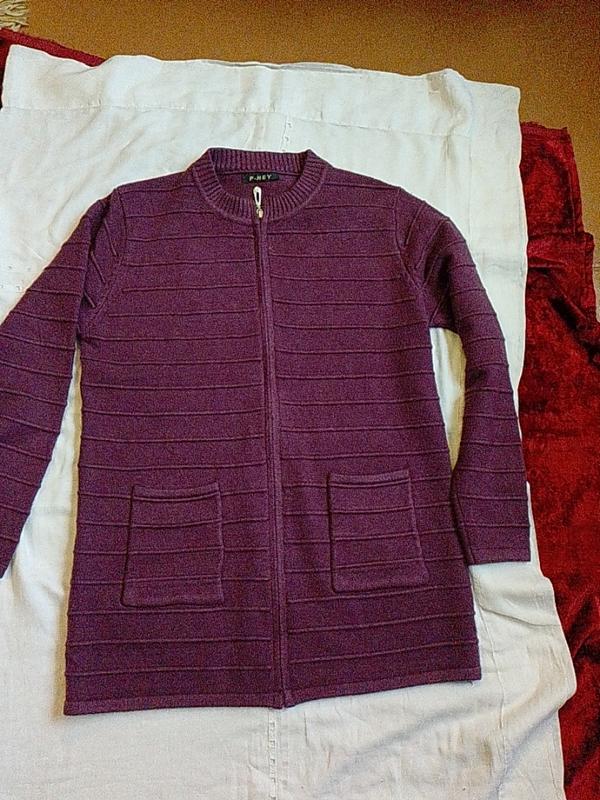 Состояние отличное, материал скорее всего акрил, мягкий на ощупь , красивого цвета, хорошо тянется.Длина 75 ПОГ51 ПОТ 50ПОБ 50 длина рукава 57