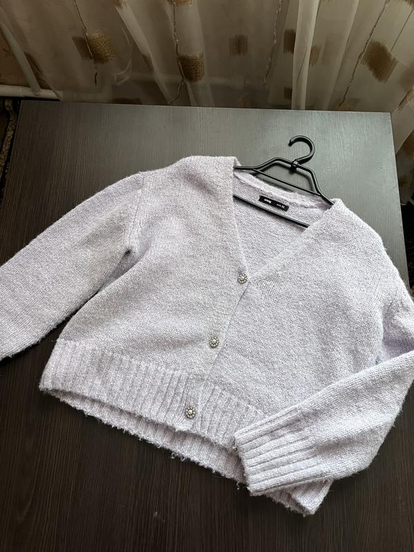 Очень теплый оверсайз кардиган sinsay размера xs с красивыми пуговицами сиреневого цвета