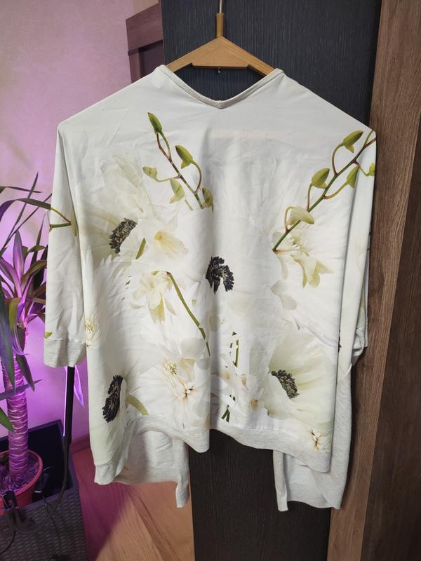 Этот кардиган от Ted Baker добавит женственности вашим сезонным вязаным изделиям. Легкая и удобная в использовании, эта модель идеально подходит для смены времен года. Он украшен тонким цветочным принтом сзади, имеет рукава длиной три четверти, открытую переднюю часть и контрастную отделку. Наденьте простую майку и джинсы скинни, чтобы создать свежий дневной образ. Брендовая кофточка безрукавка британского дорогого бренда TED BAKER. Размер указан 4( L-XL). Состав: 80%вискоза 17%полиамид 3%эластан. 100%полиэстер(сзади). Кофточка свободного кроя; выполнена спереди из эластичного шелковистого трикотажа без застежек ;длина рукава 2/4; сзади стильный V -образный вырез на фоне сочного цветочного принта в стиле Ted Baker. Замеры: длина от горловины-48, ширина манжета на рукаве-15, ПОГ сзади около- 77, длина по спинке по центру- 57см.