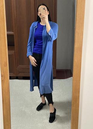 Отличный кардиган Свободного покроя поэтому подойдет на размер одежды М,Л, ХЛ Также можно носить его в виде рубашки или домашнего халатика По бокам есть разрезы Длина кардигана 112см Длина рукава 51см Полуобхват в груди 60 см Ткань красиво тянется но сохраняет форму