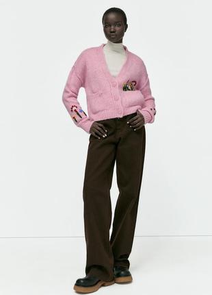 свободный покрой, v-образным вырезом,застежка на пуговицы, длинный рукав, 2 кармана, передняя часть и рукава украшены вышивкой. Бирки зрезаные