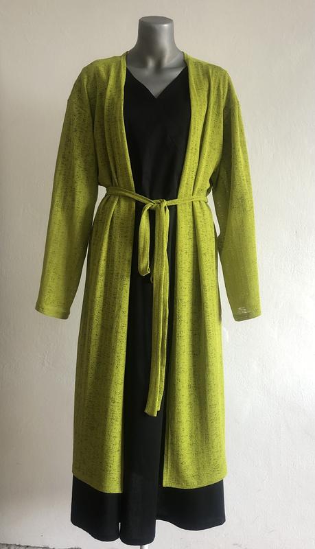 Легкий весенне-летний кардиган из фактурного материала. Прямой силуэт, опущенная линия плеча, широкий рукав. Ткань тянется, красиво смотрится и с поясом, и без него. В наличии размеры от 42 до 58