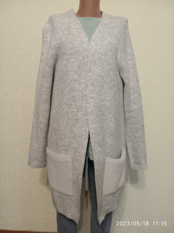 Кардиган светло серого цвета в идеальном состоянии.Евро размер 40.Плечи-47,ПОГ-55,ПОТ-53,ПО низу-55, длина рукава -65, длина кардигана -90см