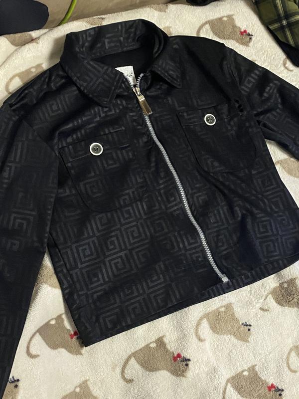 Черная кроп кофточка с квадтраным узором на застежке, размер S