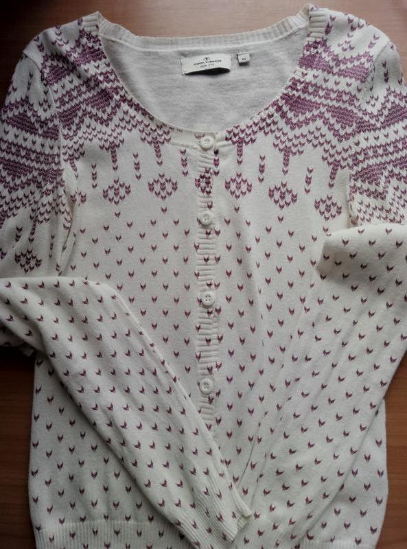 оригинальная нарядно-каждодневная кофточка. написан размер XL, реальный размер s или м. цвет молочный с бордовым рисунком.