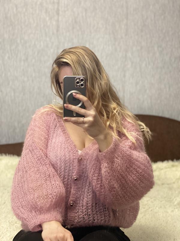 Трендовый кардиган🌸 Нежно-розового цвета Ручная работа Размер: Oversize Материал: кидмохер Звʼяжемо на замовлення будь-якого розміру і кольору ☺️