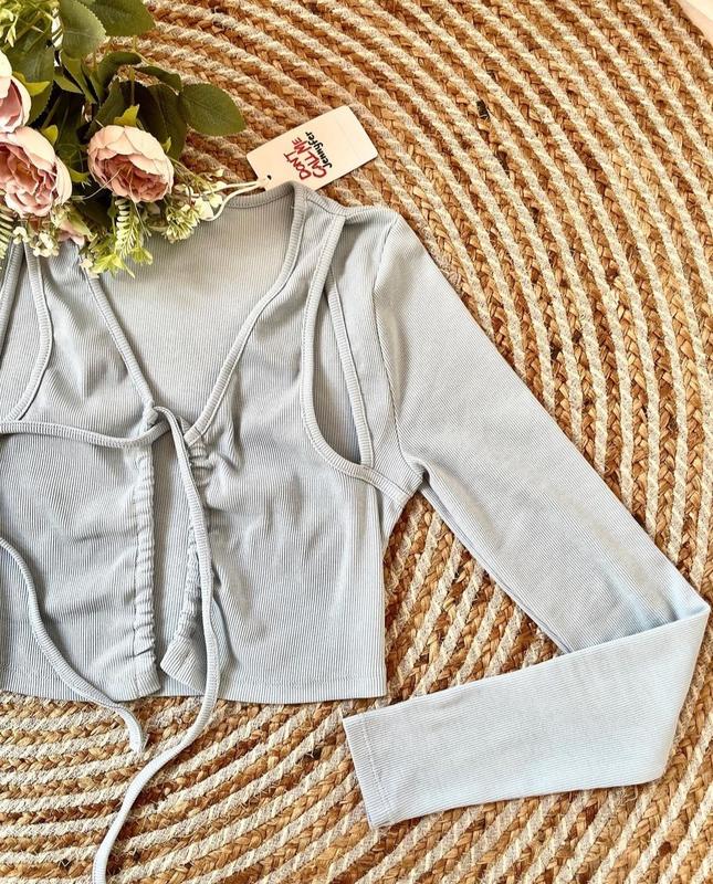 Кофточка в рубчик, небесно-голубой цвет☁️ бренд DCMJ Фото на теле нет Размер М, может быть S Смотрите остальное объявлений, новую одежду в наличии 🖤