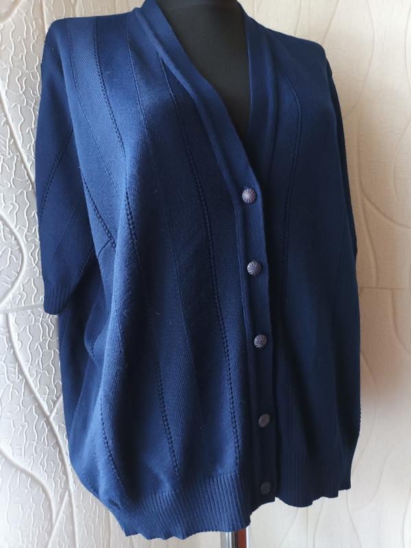 Кофта в отличном состоянии, цвет тёмный синий, дефектов нет. Хорошо тянется, замеры сняты в спокойном состоянии изделия. Ткань мягкая, не толстая, просвечивает, тонкая. Сочетается с джинсами, юбками. ❤️ пожалуйста ориентируйтесь на замеры. Замеры - плечо 14 см, - длина рукава 27 см, - длина по спинке 59 см, - длина по боковому шву 39 см, - полуобьем по груди 57 см, - ширина плеч по 43 см. 📦 Отправка новой почтой и укрпочтой при оплате на карту. Наложенным платежом не отправляю.