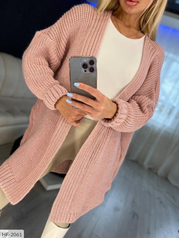 Кардиган HF-2061 Розміри: Універсальний Модель вільного крою, оверсайз Склад: напівшерсть Кольори: молоко, світла пудра, темна пудра, джинс, сирень У спокійному стані приблизні виміри: Довжина виробу 80 см. Довжина рукава від горловини 73 см
