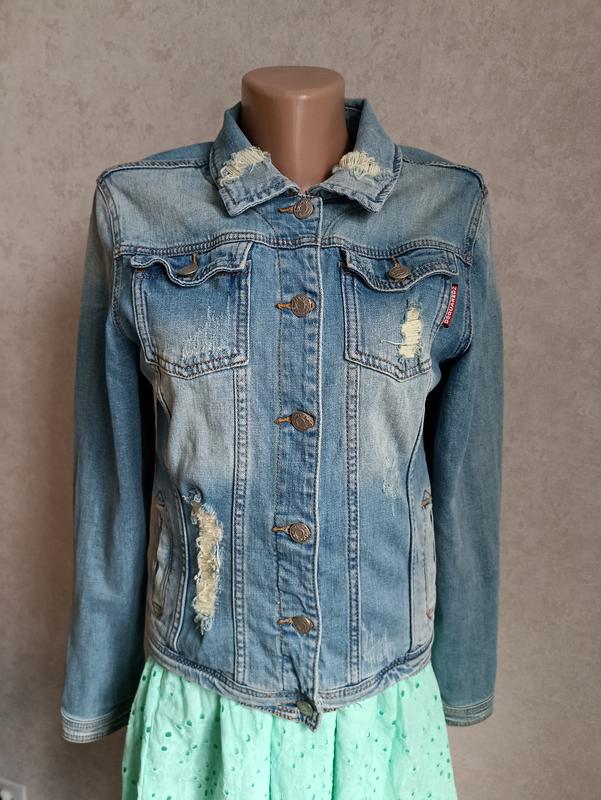Джинсовка Длина-54см, Ог-46см, в поясе-43см. Длина рукава-60см. Стан красивое, но сзади есть пятно на фото видно...