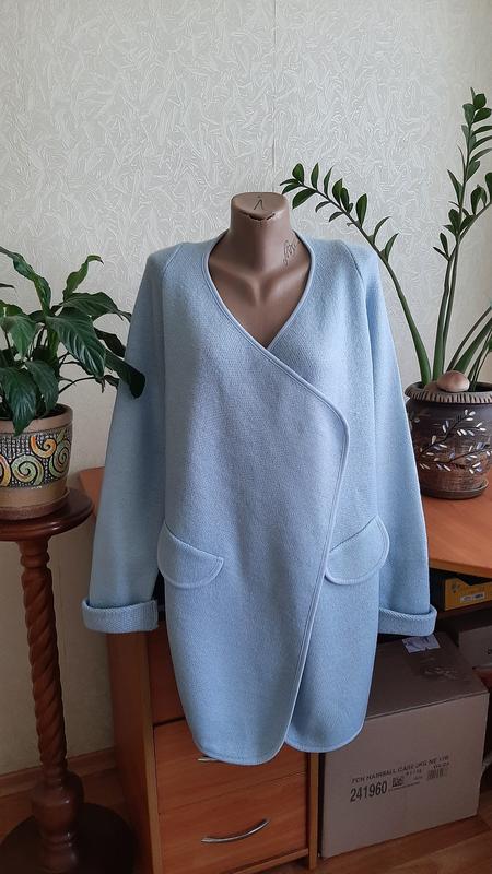 Замечательный кардиган голубого цвета. Длина перед 84, спинка 75 Пог 50-52 Поб 52-54