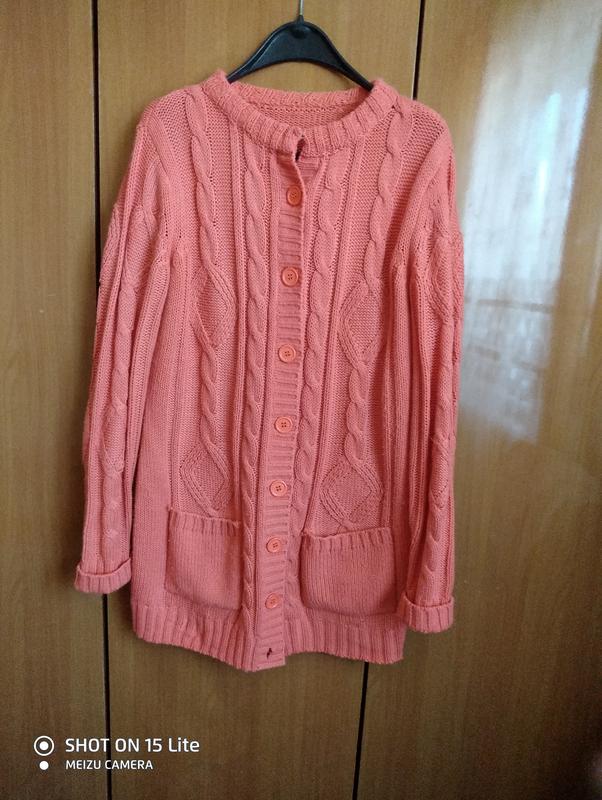 кардиган красивого кораллового цвета ог104см, длина 84см