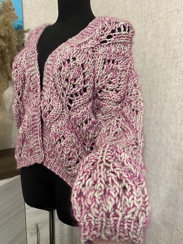 Кардиган мягкий и теплый. Подойдет для весны и холодных летних вечеров. Материал: шерсть, акрил та мохер Параметры манекену на фото: обхват грудей - 91 см, обхват талии - 69 см, обхват бедер - 94 см. Доставка: новая почта та укрпочта Возможен самовывоз в Днепре.