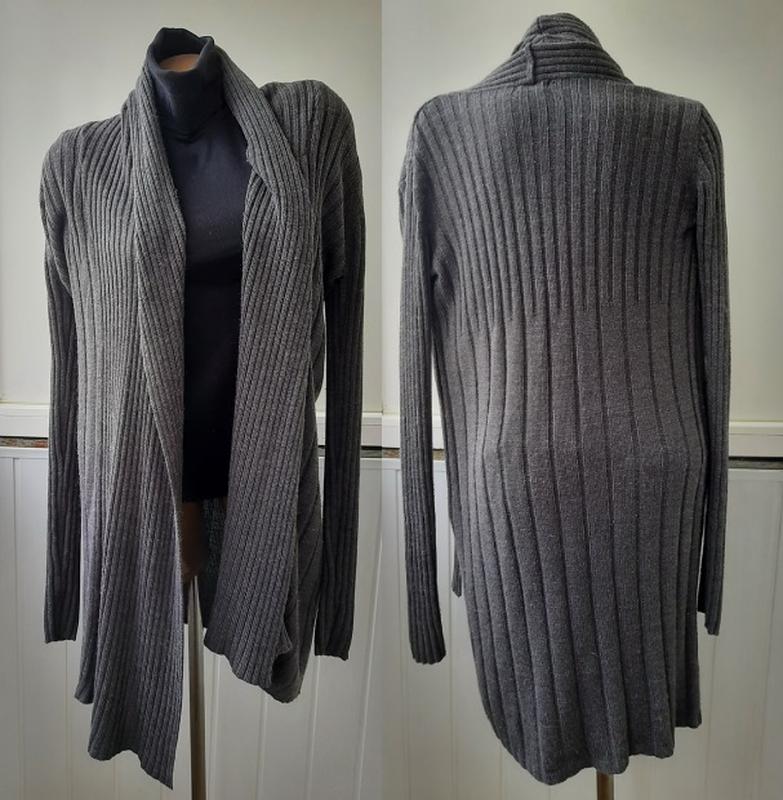 В очень хорошем состоянии. Недостатки: немного катышек (убираются, нужно заняться). Размер 12/40. Подойдет S/M. Одет на манекен размер S с настройками 85-60-92 см.