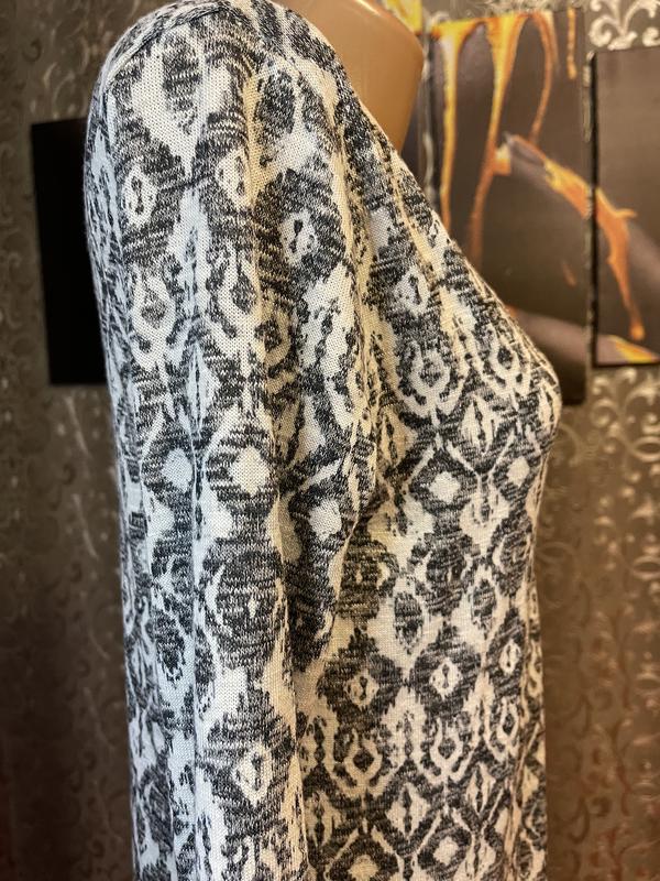 Найтонший повітропроникний кардиган турецького виробництва.Легкий малюнок.Комфортна довжина.Розмір по бирці р.38. Заміри: 🖤🩶🖤🩶🖤🩶 ПОГ=48 см НОТ=46 см НОС=50 см НО низу=50 см Плече=8,5 см Рукав=58 см Довжина=103 см 🖤🩶🖤🩶🖤🩶