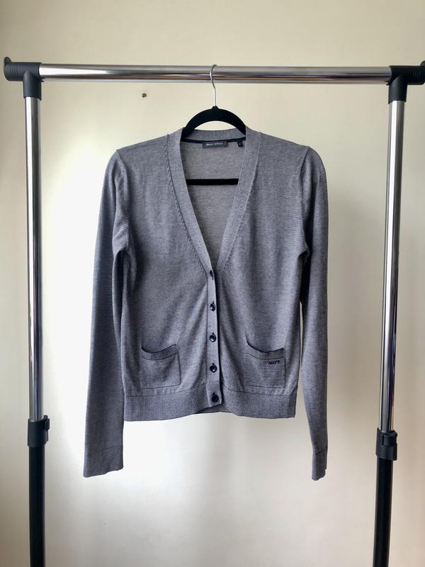Вкорочений кардиган преміального німецького бренду. Стан ідеальний нової речі. Розмір S - M. Заміри: ширина по грудях - 40 см; ширина по низу - 39 см; довжина рукава від шиї - 73 см; довжина виробу по спині - 54 см. Склад: 100 % бавовна. Рекомендований догляд: прання та прасування при низькій температурі.