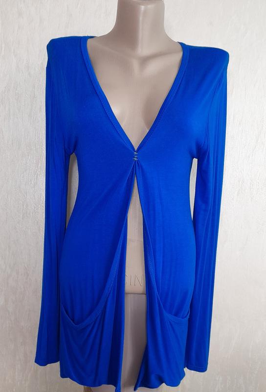 Жіночий легкий кардиган насиченого синього кольору з карманами, 95% котон, у гарному стані, розмір 44-46