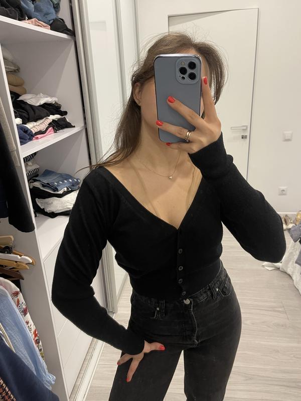 Укороченная кофточка с сеткой на плечах, выглядит очень нарядно, красиво под брюки или джинсы с высокой посадкой. На с-м