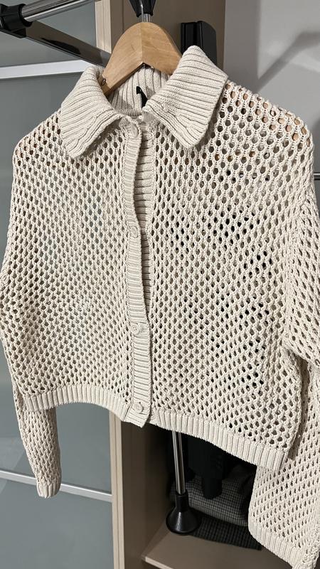 Кофтинка H&M размер S. В идеальном состоянии. На лето просто супер легкая, продувается и смотрится очень интересно и стильно. Состав 50 коттон, 50 синтетика