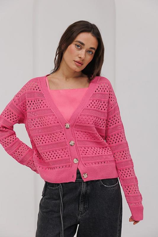 У виробі краї прямого низу, V-подібної горловини та довгих рукавів виконані зі щільної в`язки в дрібний рубчик, низ виробу та рукавів також обшитий тонкою гумкою. Застібається модель спереду на декілька великих ґудзиків. Пряжа 50% бавовна, 50% акрил Довжина виробу 53-58 см Довжина рукава 57-60 см Ширина під проймами 53-56 см Примірок немає. Самовивіз у м.Хмельницький після повної оплати. Приймаю повернення за умови збереження товарного вигляду та доставки за Ваш рахунок. Або обмін на інший розмір за умови наявності. Відправка укрпоштою та новою поштою. Післясплата (накладний платіж з авансом) або повна оплата. Ціна остаточна. Дякую за розуміння. 102092