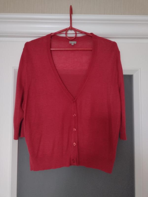 Кофта OVS, размер L. Цвет терракотвый. Тоненькая вискоза с акрилом. Рукав до локтя или чуть прикрывает локоть. Очень лёгкая, невесомая и комфортная. Состояние очень приличное. Плечи- 40 см, ПОГ-49 см, ПОТ- 40 см, ДР-36 см, резинка внизу(1/2)-38 см в нерастянутом состоянии.