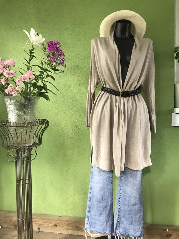 Легкий удлиненный кардиган без застежки от Uniqlo. Состав : лён/вискоза (54/36). Размер по набору-M. Замеры:длина-82 см, ПОГ-63 см, ПОБ-63 см, рукав от ворота-70 см.