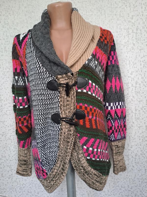 Якрій і стильний кардиган вільного краю. Дуже теплий, до складу входить натуральна вовна Виробництва Туреччина. Довжина рукава 62cm, довжина кардігана 73см, ПОГ 52-53см