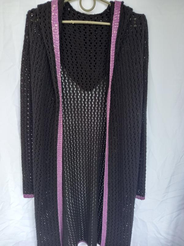Отличное качество,очень комфортный в прохладное время года.Ог 45 см, бёдра 52 см, рукав 64 см, длина 110 см