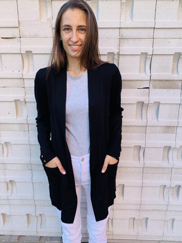 Кардиган без пуговиц, с карманами, приятная на ощупь. Цвет: черный. Вещь новая, с биркой. Рост модели 170