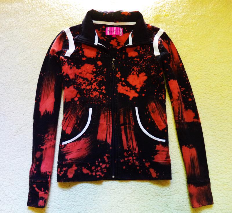 (РУЧНИЙ РОЗПИС,ХЕНД МЕЙД) для творчих особистостей дуже стильна молодіжна толстовочка двунітка але не товста і не тоненька рр 12 але дивіться заміри довжина-56(57)см плечі-36см, довжина рукава від коміра і від плечового шва-67(59)см пог-47(максимум 51)см пот-43(47)см за патентом внизу-46(51)см Складу котон лукра Стан б\у хороше в наших пропозиціях є штанці у цю ж тему