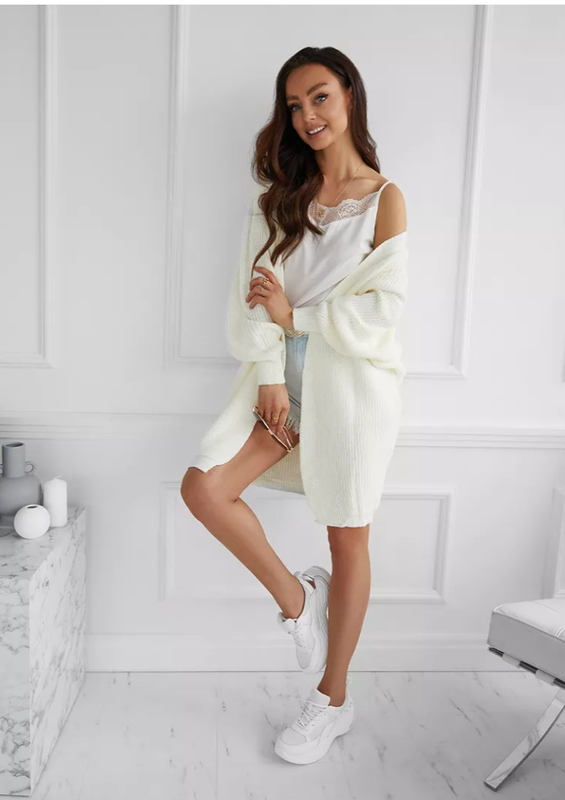 Удлиненная модель кардигана без застежки Мягкий и комфортный, медленный и стильный. Оверсайз посадка, дорогой свет молочный цвет Размер указан м, но на самом деле л/мин. Стан идеален, без следов ношения.