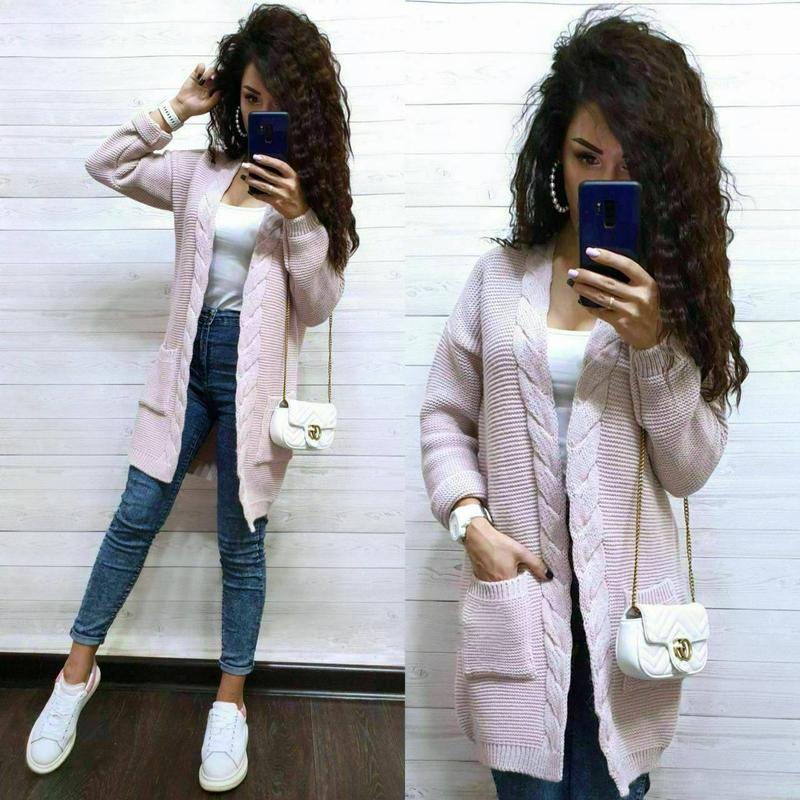Кардиган Машинная вязка 50% вовна, 50% акрил Размер единый 42-46 Цвет голубой, капучино, темно-синий, бордо, молоко, серый, пудра Длина по спинке 80-82 см Длина рукава от шеи 80 см Длина рукава от плеча 58 см Объем по груди 100-102 см Цена: 910 грн
