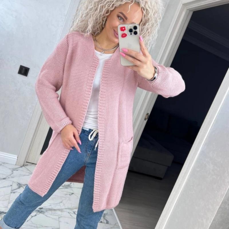 Кардиган новая Цена-650 грн Размер единый 42-48 Замеры изделия в лежачем состоянии: -длина 73см. -ширина 46-55см. - Длина рукава 60см + 12см плечо. Состав: полушерсть. В наличии 5 цветов: - Светлая пудра; - чорна пудра; - джинс; - серый - сирень код2005(азы)