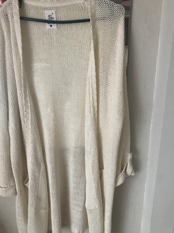 Довжина-83, прямивши від горловини-63, пог-52.Підходить на будь-який розмір, т. к. тягнуться і немає ґудзиків.Використовувалася як накидку ввечері.Вежа у чудовому стані.Прекрасно підходить для джинс і шортів.