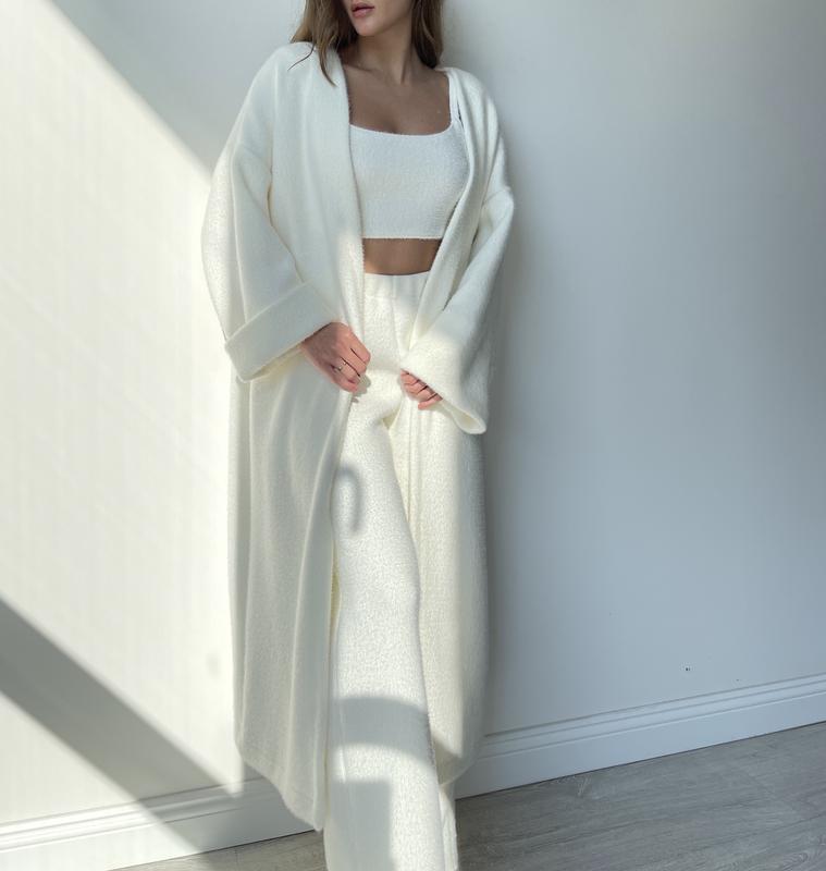 Неймовірно м’яка тканина, ніби кролик Бренд feel.so.special Якість ❤️🔥 Кардиган 3290 грн Штани 2050 грн Топ 1100 грн Для замовлення напишіть: •зріст •обʼєми грудей талії стегон, або розмір який носите зазвичай Доступний в 9 кольорах: молоко(як на фото), білий, беж, кемел, сірий, лаванда, чорний, смарагд, пудра