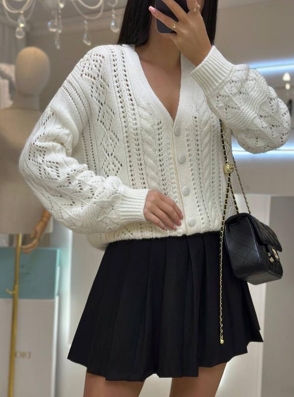 Кардиган (артикул п654) ✅плотная в почки (кашемир - 50%, шерсть 43%, вискоза 7%) ✅замеры изделия - длина по спинке 54 см, полуобхват по груди 50 см, длина рукава от горловины 68 см ✅размер единственный 42-46 ✅цвета - молоко, бежевый 1700 грн
