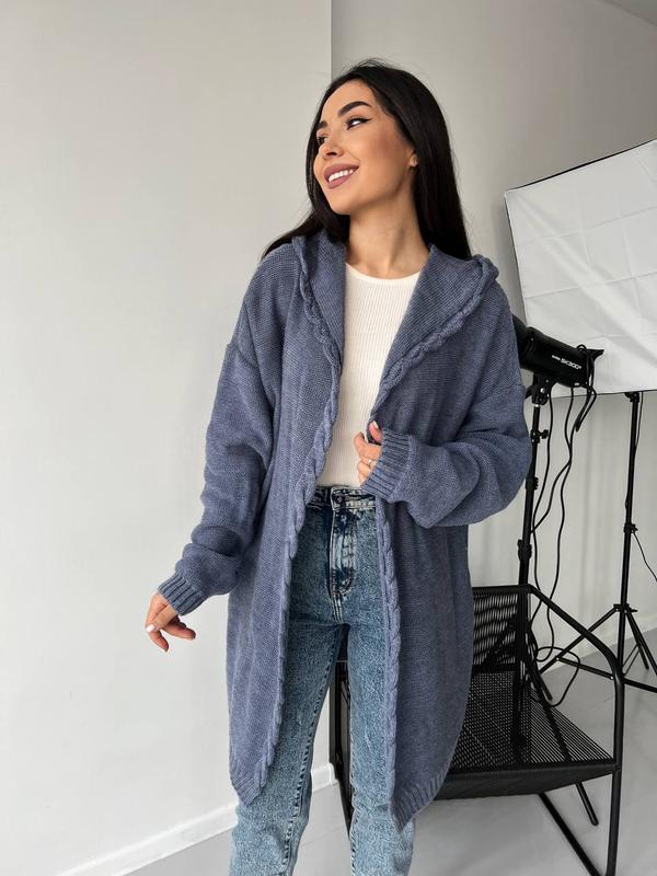 Кардиган ▪️Розмір: універсальний 44-54 ▪️Склад: напіввовна ▪️Кольори: джинс, молоко, світла пудра, темна пудра, сірий Заміри: - довжина 85 см; - довжина рукава від горловини 80 см; - ширина по спинці 70-78 см;