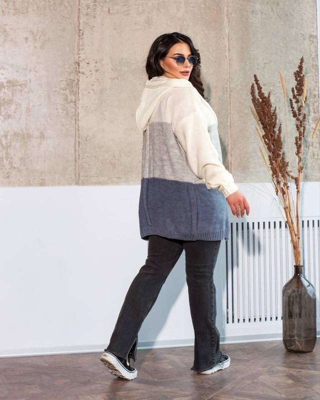 Кардиган Модель 5030 Размер универсальный 44-52 Состав полушерсть Кольори: молоко+светлая пудра+темная пудра, серый+джинс+синий, молоко+серый+джинс, серый+темная пудра+черный