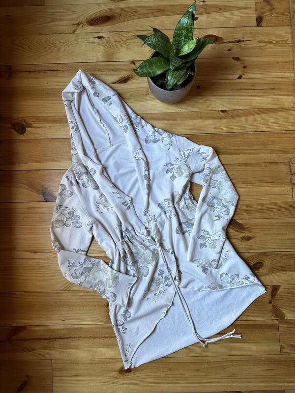 Стильный кардиган с карманами цвет молочный с цветочным принтом на талии завязывается и стягивается состояние отлично