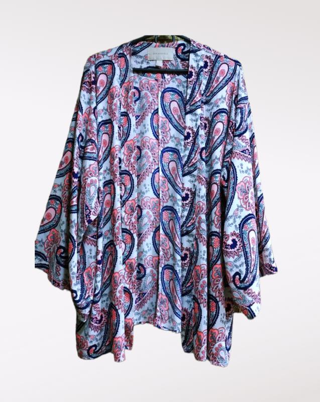Красивый кардиган с приятной к телу шелковистой ткани. Свободный фасон с широким рукавом. Идет на любой размер. ПОГ-64 Длина-76 Рукав-3/4