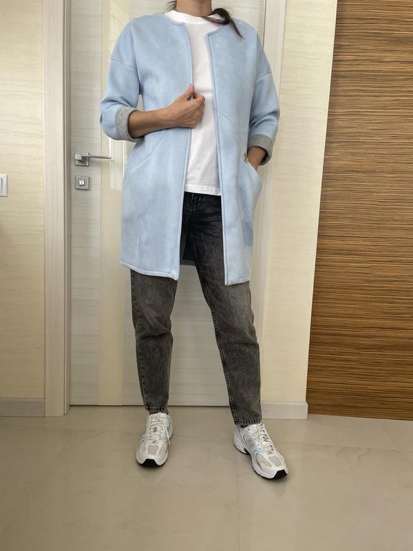 жіночій кардиган , дуже гарного небесно- блакитного кольора. має врізні кишені. виробництво Італія. Підійде на розмір с-м. Заміри: довжина 85 см. спущений рукав , 3/4. пог 46 см.