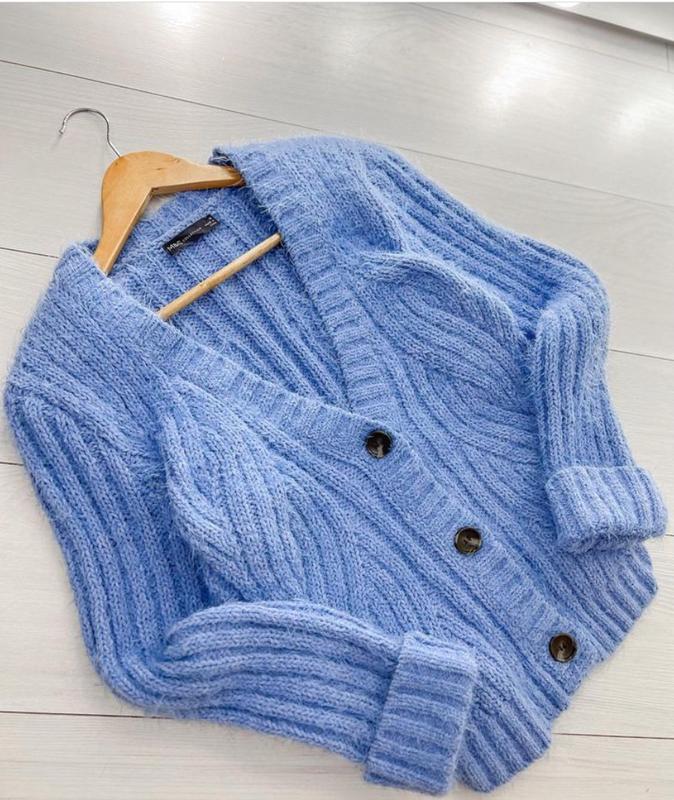 Голубой кардиган Размер М 70%полиэстр, 30%полиамид полуобхват: груди-до 52см Талия-до 44см рукав-60см, плечи - 40см длина-62см
