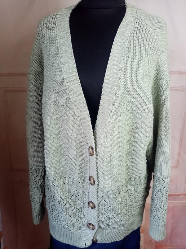 Кардиган із бавовни і палієстру в ідеальному стані дефектов нема Гудзики усі є в наявності Приемний на дотик Ног 72см Нот62см Плечі 70см довжина рукова 55см нор 20см Довжина по спині 70см