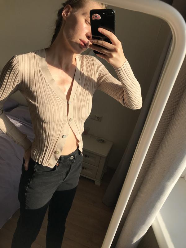 Кардиган с перламутровими гудзиками. Класна текстура, коттон, гарний стан. Розмыр хс/с, заміри: Ширина плечей - 34см Довжина по спині- 51см Довжина рукава 59см Напівобхват грудей - 33см Ціна - 349грн